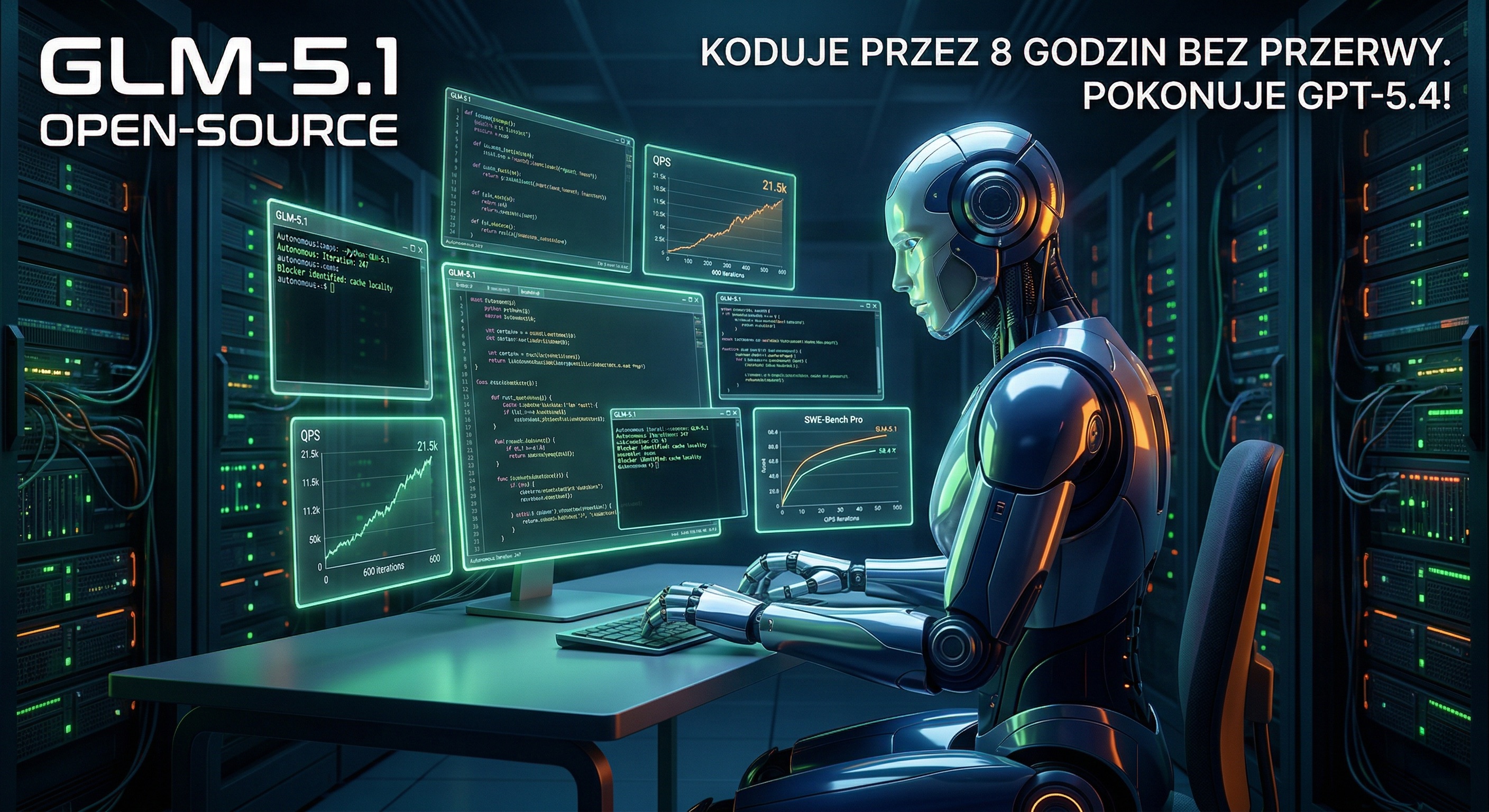 Poprzednik (GLM-5 z lutego 2026) dorównywał Claude Opus 4.5. Wersja 5.1 to gigantyczny skok naprzód w zdolności do utrzymania skupienia w bardzo długich sesjach roboczych. Tam, gdzie inne modele wyczerpują pomysły i zaczynają się zapętlać po kilkudziesięciu próbach, GLM-5.1 dopiero się rozkręca.