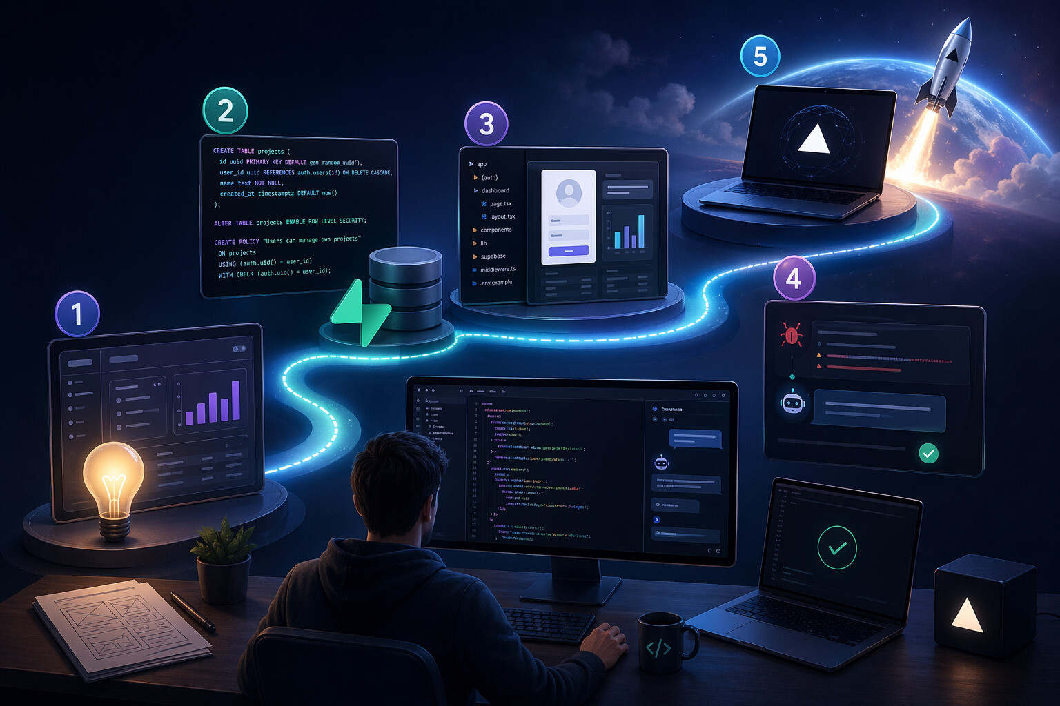 Wybrany tu stos technologiczny (Next.js + Supabase + Vercel) jest optymalny, ponieważ modele AI (takie jak te w Cursorze czy najnowszy GPT-5.5) “widziały” w swoich danych treningowych miliony podobnych rozwiązań i w tym środowisku halucynują najrzadziej.